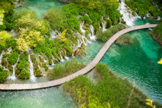 十六湖國家公園,又名普利特維采湖群國家公園,是克羅埃西亞最令人驚嘆的自然奇景與世界自然遺產。園區橫跨近三萬公頃,由十六座高低錯落的湖泊以無數瀑布相連,湖水隨陽光角度與礦物質濃度變幻色彩,從碧綠到湛藍,如水晶般透亮。木棧步道蜿蜒於湖畔與樹林之間,潺潺水聲與鳥鳴相伴,讓人彷彿漫步於夢境。上湖區以幽靜森林與寬廣湖面聞名,下湖區則以層疊瀑布與峽谷景觀最為壯麗。冬季時瀑布凝結成冰晶,如仙境般靜謐壯觀。十六湖國家公園以其變幻無窮的水色與純淨生態,展現大自然最動人的詩篇,是歐洲旅人心中永恆的夢幻之地。