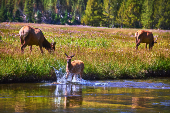 這裡擁有世界公認最美麗的瀑布景觀。由於特殊地形造就了109英呎的上瀑布與308英呎下瀑布的壯闊奇景。在黃石公園內早晨及黃昏較容易看見野生動物們進食。運氣好的話還能遇到成群的美洲水牛或麋鹿遷徙,結隊橫越馬路有趣的"塞車"景象。