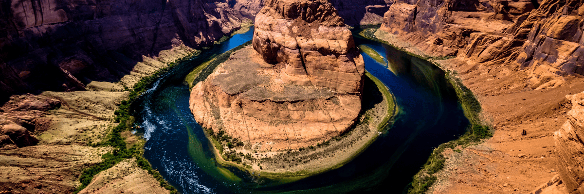 由上往下俯瞰,將發現科羅拉多河流經270度巨大的馬蹄型彎道,此景觀是保證震憾人心。