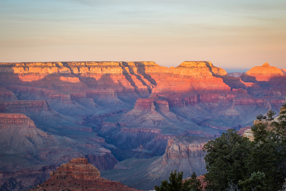 世界七大奇景之一的大峽谷由科羅拉多河流經並切割亞利桑那州,所形成1476英尺深的溪谷景觀,大峽谷山石多為橘紅色,從谷底至頂部分佈各時期的岩層,層次清晰可見,並且含有各地質年代的生物化石,彷彿是一處大自然的地理教室,1979年被列入聯合國教科文組織的世界遺產行列。大峽谷全區長度約277英哩,深度達1英里,形成的主因是蜿蜒曲折的科羅拉多河向下切割,鏤刻出令人嘆為觀止的世界奇景!大峽谷兩岸都是橘紅色的巨岩斷層,經過三億年的自然風化,地震,河流的衝擊和切割,大自然利用鬼斧神工的創造力鐫刻得岩層嶙峋,夾著一條深不見底的巨谷,更顯的無比壯麗。神奇的是,一天之內,隨著太陽光線的強弱,峽谷岩石色彩轉換不同顏色,時而深藍色、時而棕灰色、時而又是赤橘色,不禁令人讚嘆大自然造物力量,真是太神奇了呀!